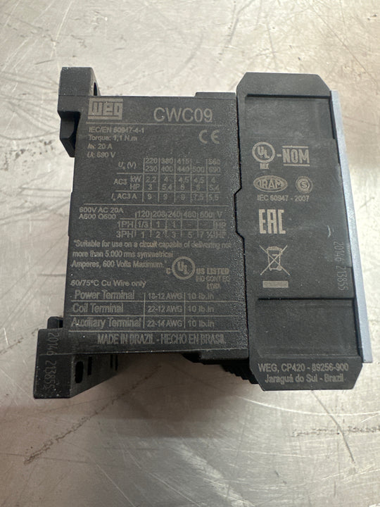 WEG CWC09-10-30D24 Contactor 240V Rated Current 9A Control Voltage 50Hz