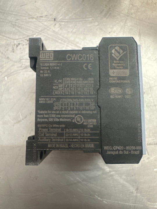 WEG Contactor 25A Control voltage 208-240V 50/60Hz CWC025-00-30D23
