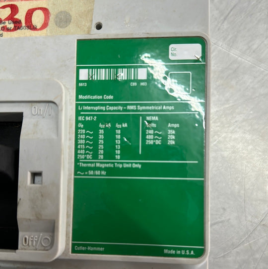 Cutler Hammer Molded Case Circuit Breaker 3pole 600Amp 480Vac (LI-630)Regular price $182,156.00Regular price $182,156.00 -