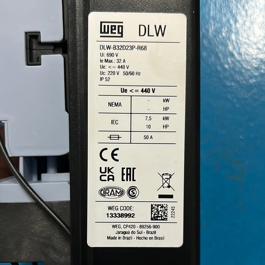 WEG 32A (22-32A Relay) 220V Control 50Hz 3PH DLW-B32D23P-R68 Plastic Enclosed Starter