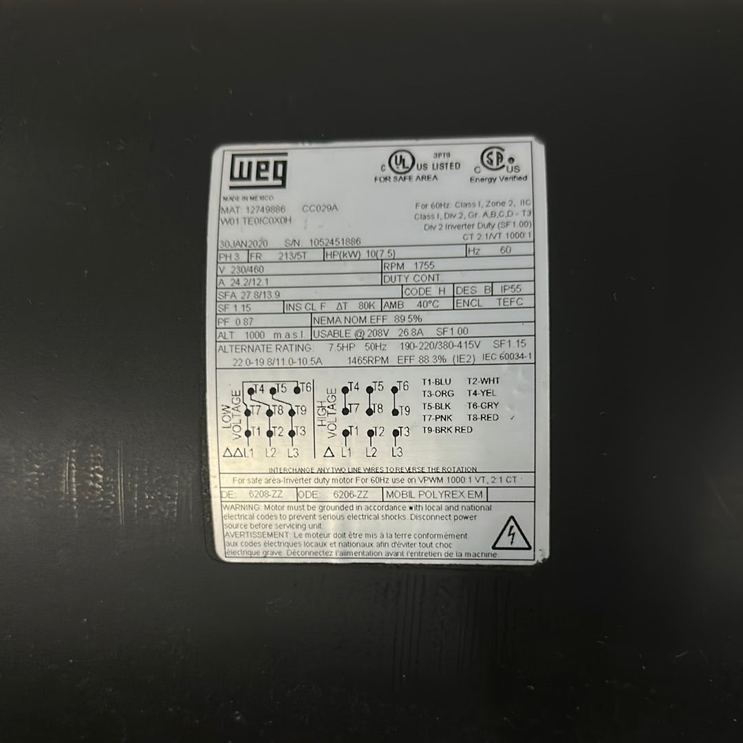 WEG 1HP 1000RPM 143/5T 208-230/460V 3PH 50/60Hz Rolled Steel Motor