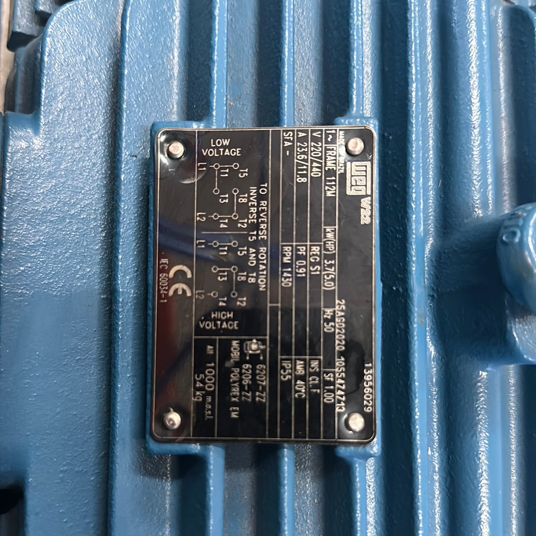 WEG 3HP 1500RPM 100L 230-400V 3PH 50HZ Wash Down Motor