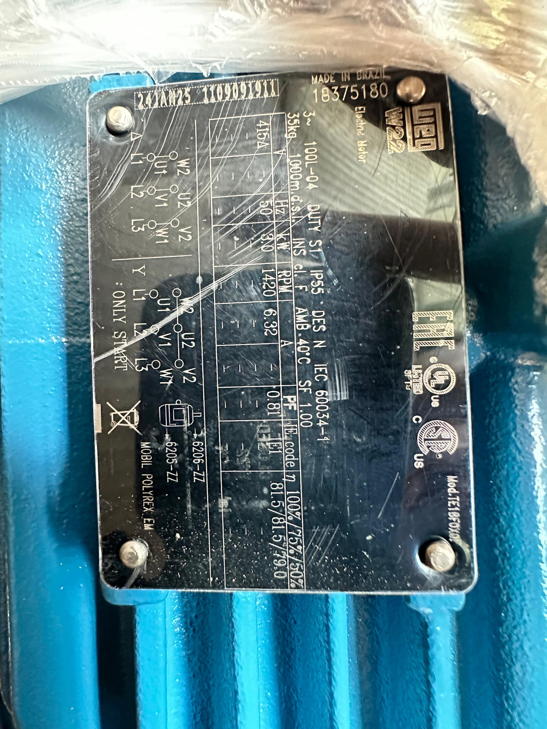 WEG 3HP 1500RPM 100L 230-400V 3PH 50HZ Wash Down Motor