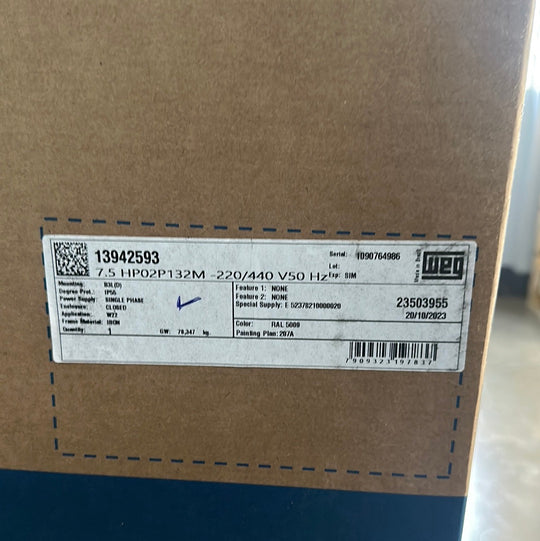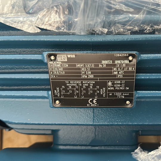 WEG 7.5HP 3000RPM 132M 220/440V 1PH 50Hz Cast Iron Motor