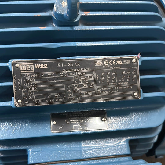 WEG 10HP 1500RPM 132M Frame 220/440V 50Hz 3phase W22 Motor