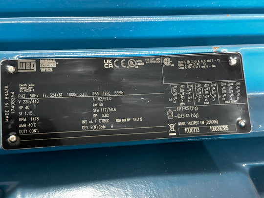 WEG 40HP 3000RPM 324/6TS 220/380/440V 3PH 50Hz Cast Iron Motor