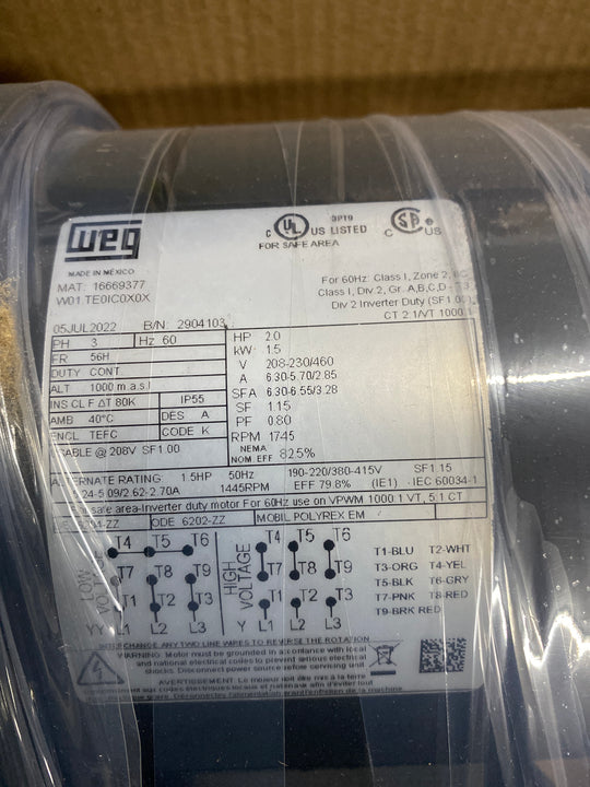 WEG 2HP 1800RPM 143/5T 190-220V/380-415V/460V 60Hz 3phase Rolled Steel Motor LOCATION M8Regular price $80,513.51Regular price $80,513.51 -