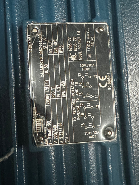 WEG 2HP 1500RPM 90L 220V/440V 1PH 50Hz Cast Iron Motor LOCATION M9Regular price $151,575.34Regular price $151,575.34 -