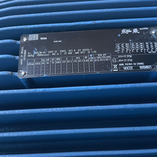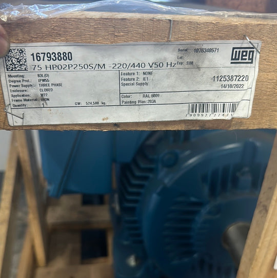 WEG 75HP 3000RPM 250S/M 220/440V 3PH 50Hz Cast Iron Motor