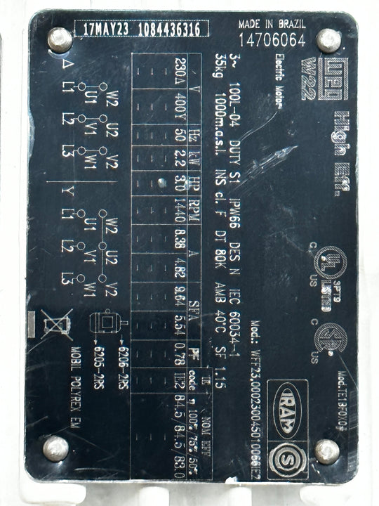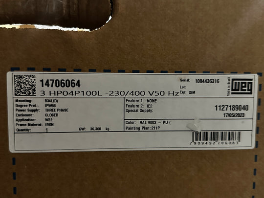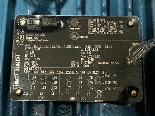 WEG 3HP 1500RPM 100L 230-400V 3PH 50HZ Wash Down Motor