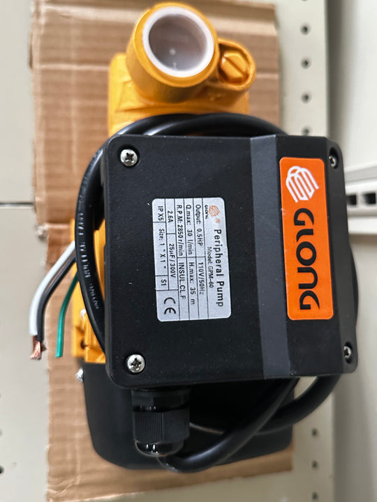 Water Pump GPM-60: Glong 1/2HP, 2850RPM, 110V, 1ph, 50Hz, Q.max: 30 l/min, H.max: 35mRegular price $12,802.05Regular price $12,802.05 -
