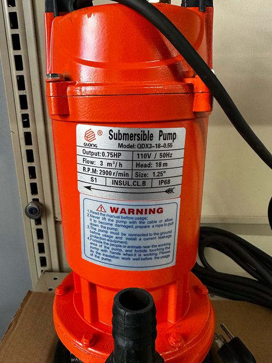 Submersible Pump QDX3-18-0.55: Glong 0.75HP, 2900RPM, 110v, 1ph, 50Hz, Flow: 3m/h, Head: 18mRegular price $28,457.69Regular price $28,457.69 -