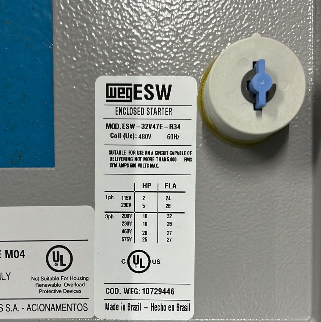 WEG 32A 440V 50Hz 3PH ESW-32V47E-R34 Metal Enclose Starter